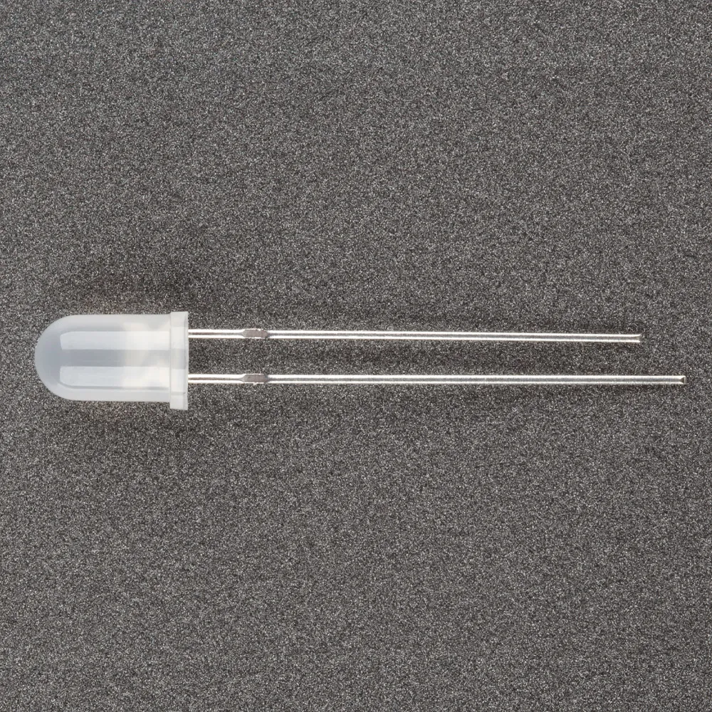 Поставка под заказ от 5000 шт. Выводной круглый светодиод, d=5 мм, белая матовая линза. Цвет свечения красный (625-630 нм). Угол излучения 60°. Сила света Iv=4000-6000 мкд при If=20 мА. VF=1.9-2.3 В. Рекомендуемый постоянный рабочий максимальный ток 16-17 мА.