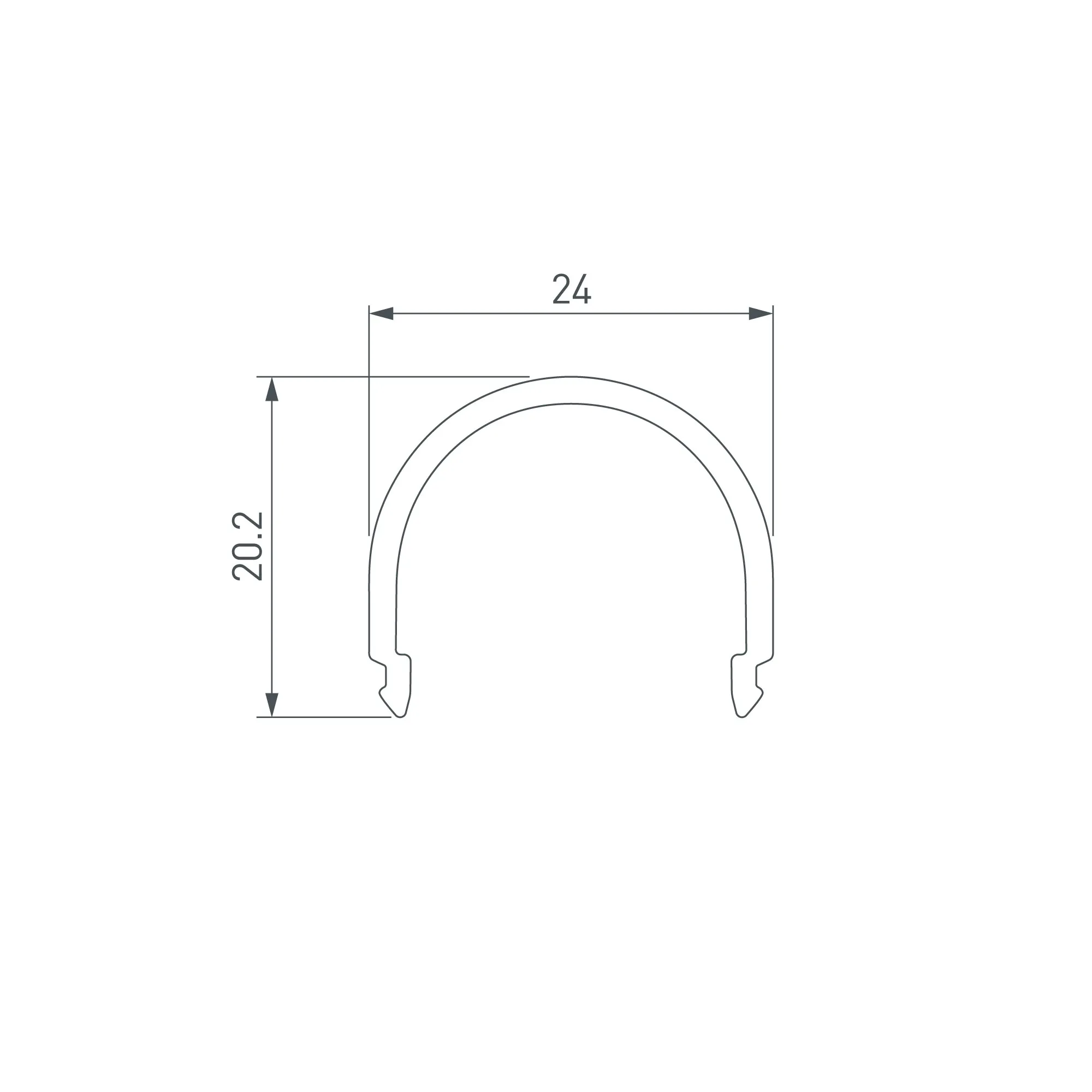 Полуматовый круглый экран (рассеиватель) для профиля PLS-GIP. Светопропускание 97 %. УФ-защита. Размеры 2000х24.3х19.7 мм. Материал PMMA.