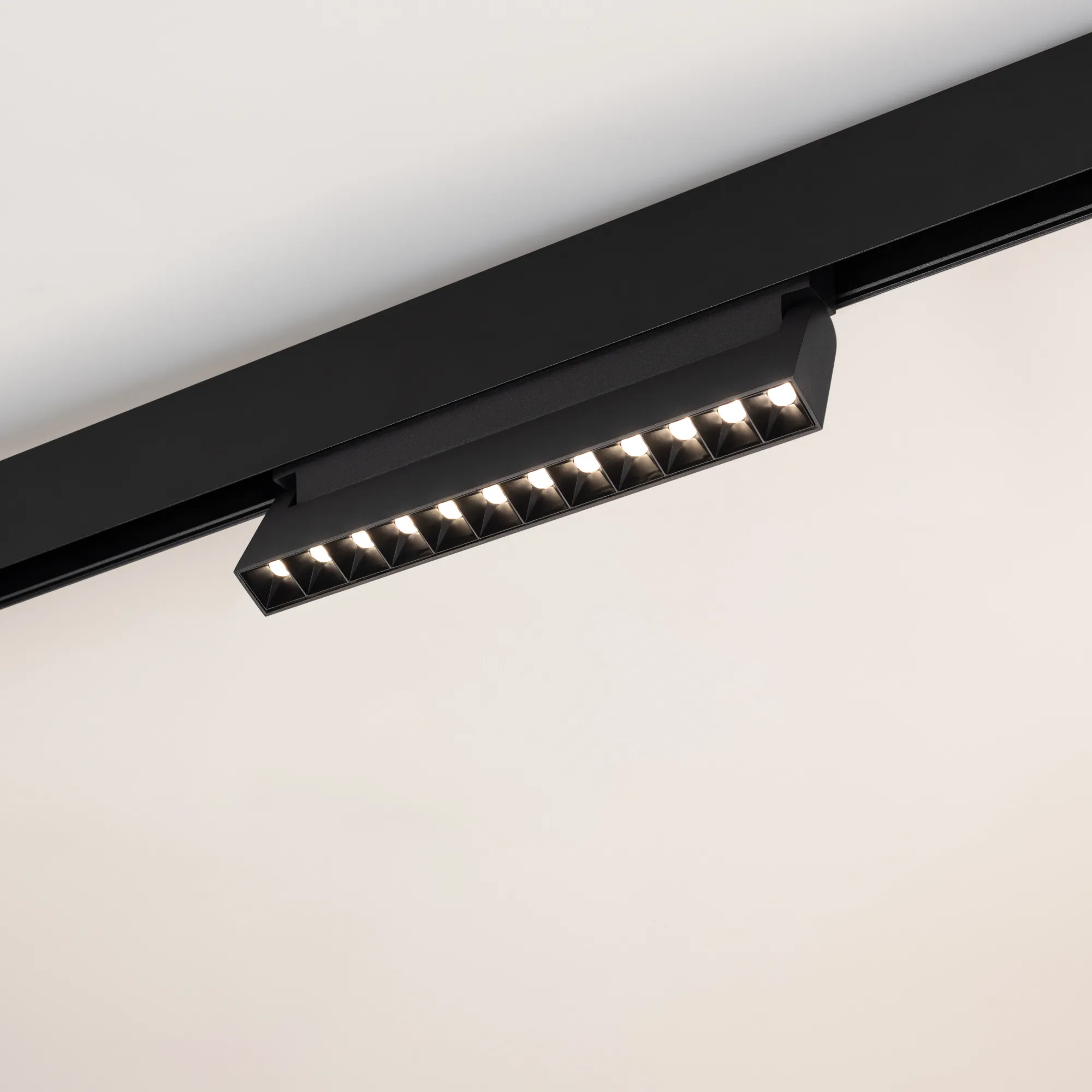 Светильник для магнитных треков MAG-ORIENT шириной 26 мм. Мощность 12 Вт, св. поток 520 лм, 43 лм/Вт, дневной 4000 K, CRI>90, угол 30°, напряжение питания 48 В. Черный прямоугольный корпус из металл, экран поликарбонат, степень защиты IP20. Размер: длина 231 мм, ширина 23 мм, высота 107 мм. Монтаж на трек MAG-ORIENT. Пульсация <1%.