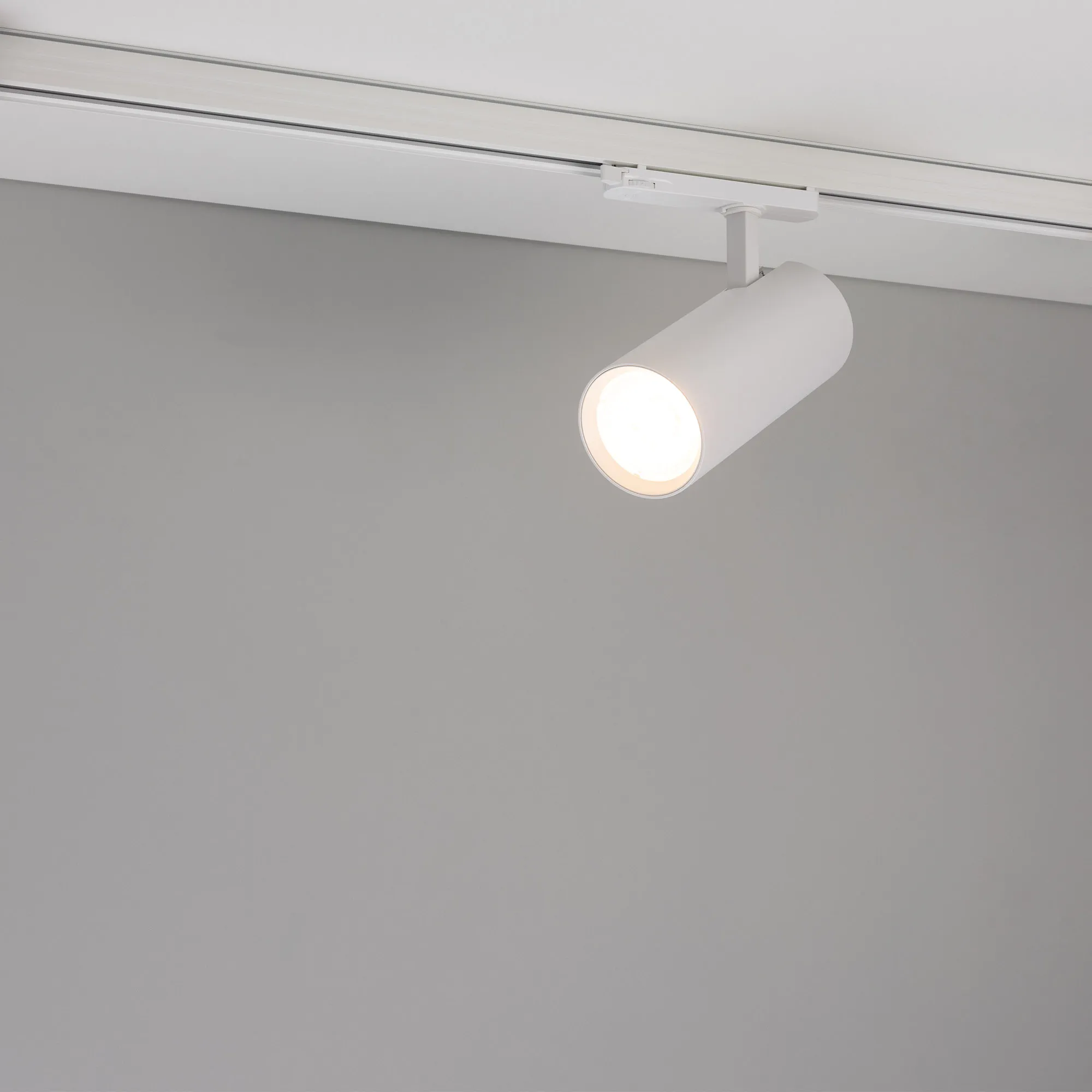 Светильник для треков/шин 4 провода. Мощность 40Вт, св. поток без решетки honeycomb 4000 лм, 100 лм/Вт, с решеткой honeycomb 2640 лм, 66 лм/Вт, теплый 3000 K, CRI>90, угол 24°, напряжение питания 230 В. Белый круглый корпус из алюминия, материал линзы PMMA, степень защиты IP20. Размер: диаметр 90 мм, длина световой части 141 мм. Монтаж на трек 3-фазный. Драйвер встроенный 24-42 В, 750мА., пульсация <5%