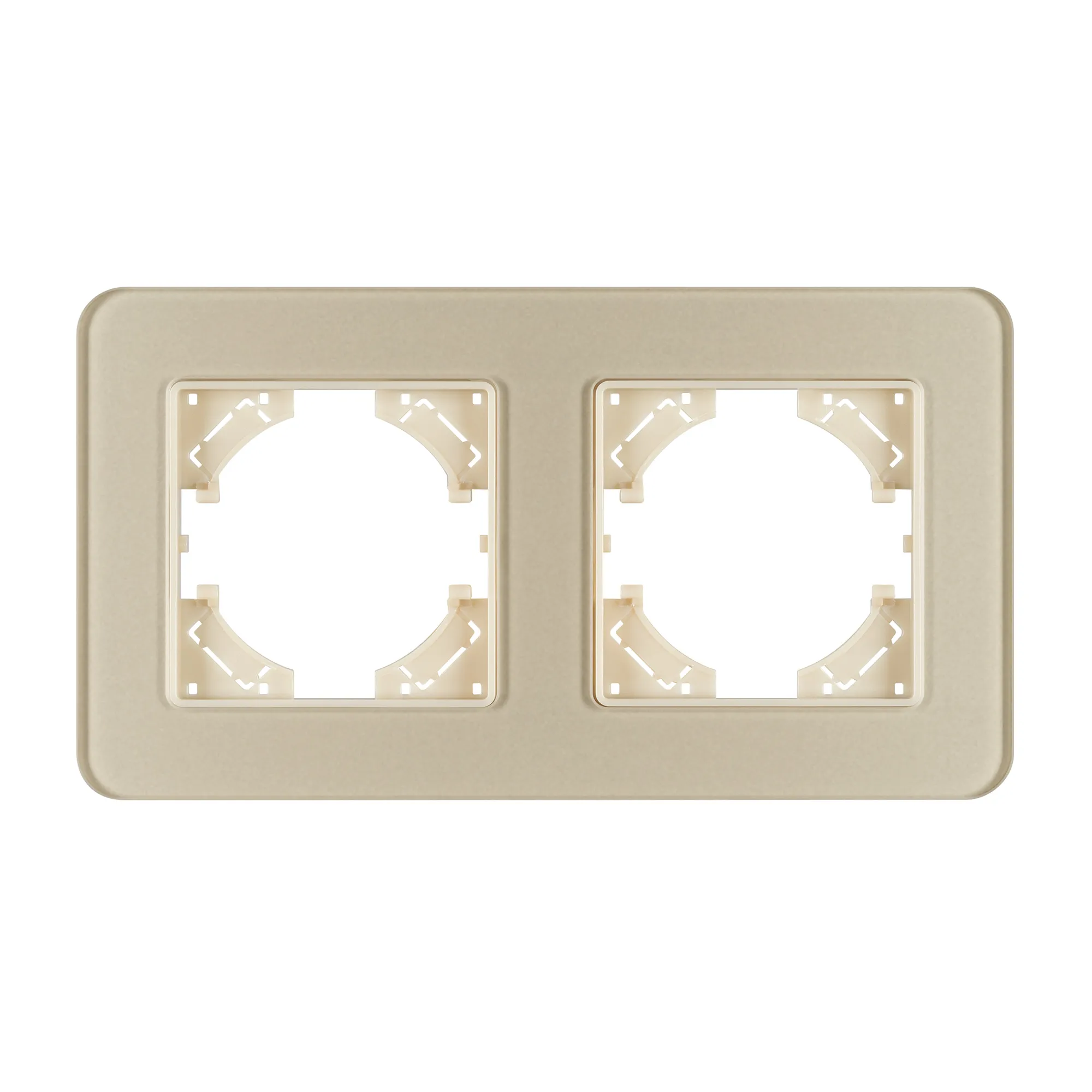 Рамка стеклянная на 2 поста, под встраиваемый механизм. Цвет - золотой с Soft-Touch покрытием. Уровень герметичности IP20. Ориентация монтажа - горизонтальная (основным ориентиром служат посадочные выступы для накладки механизма). Габаритные размеры: длина 157 мм, ширина 86 мм, высота 7 мм. Гарантийный срок 12 мес.