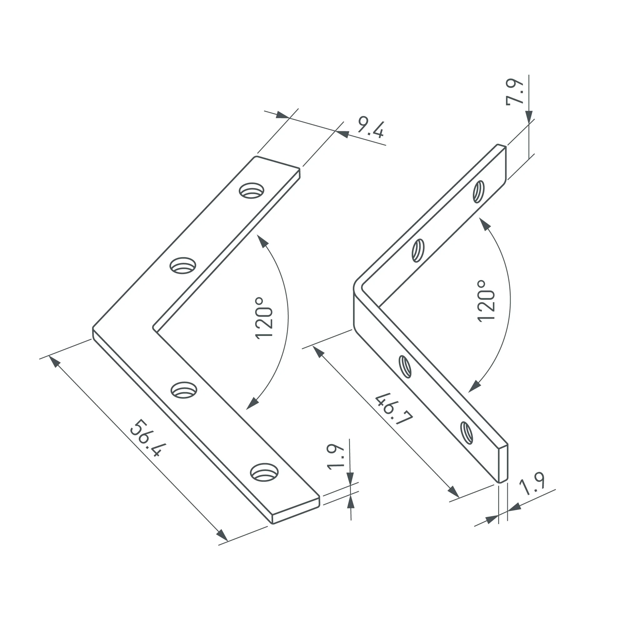 Угловой коннектор для соединения 2-х отрезков профиля LINE-6070 под углом 120°. Устанавливается в паз. В комплекте: соединитель внутренний - 4 шт., соединитель внешний - 2 шт., винт - 16 шт., шестигранный ключ - 1 шт. Цена за 1 комплект.
