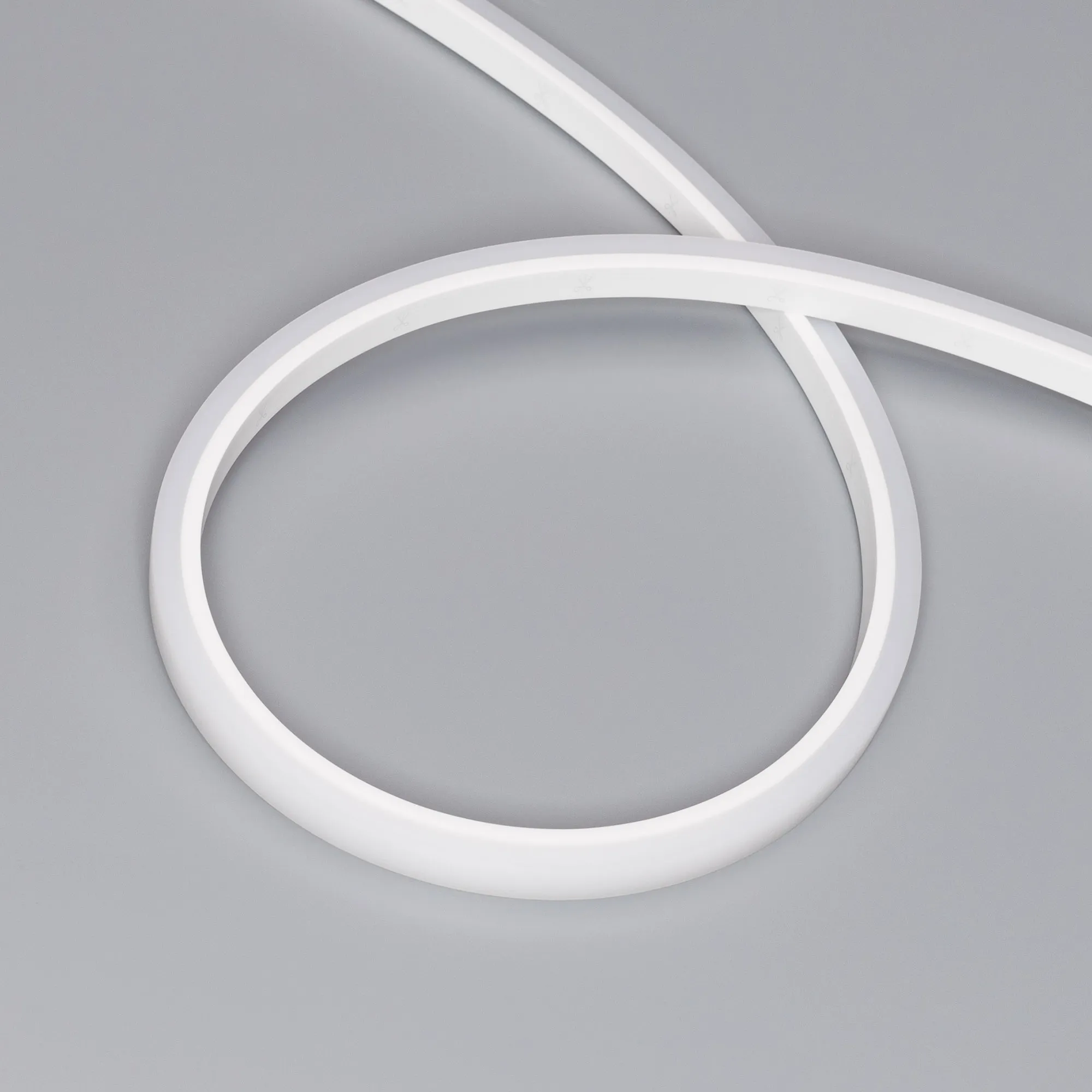 Гибкая герметичная лента (неон серии WAVE), сечение 10×10 мм. Светодиоды SMD2835 144 шт/м. Цвет свечения ТЕПЛЫЙ БЕЛЫЙ (3500 K), индекс цветопередачи CRI>90, световой поток 365 лм/м, угол излучения 170°. Мощность 5 Вт/м, питание 24 В. Оболочка из Полиуретана (PU). Класс пылевлагозащиты IP68. Размеры 5000×10×10 мм. Не подлежит резке. Вертикальный изгиб TOP, минимальный радиус изгиба 75 мм. Катушка 5 м. Цена за 1 м. Гарантия 3 года.