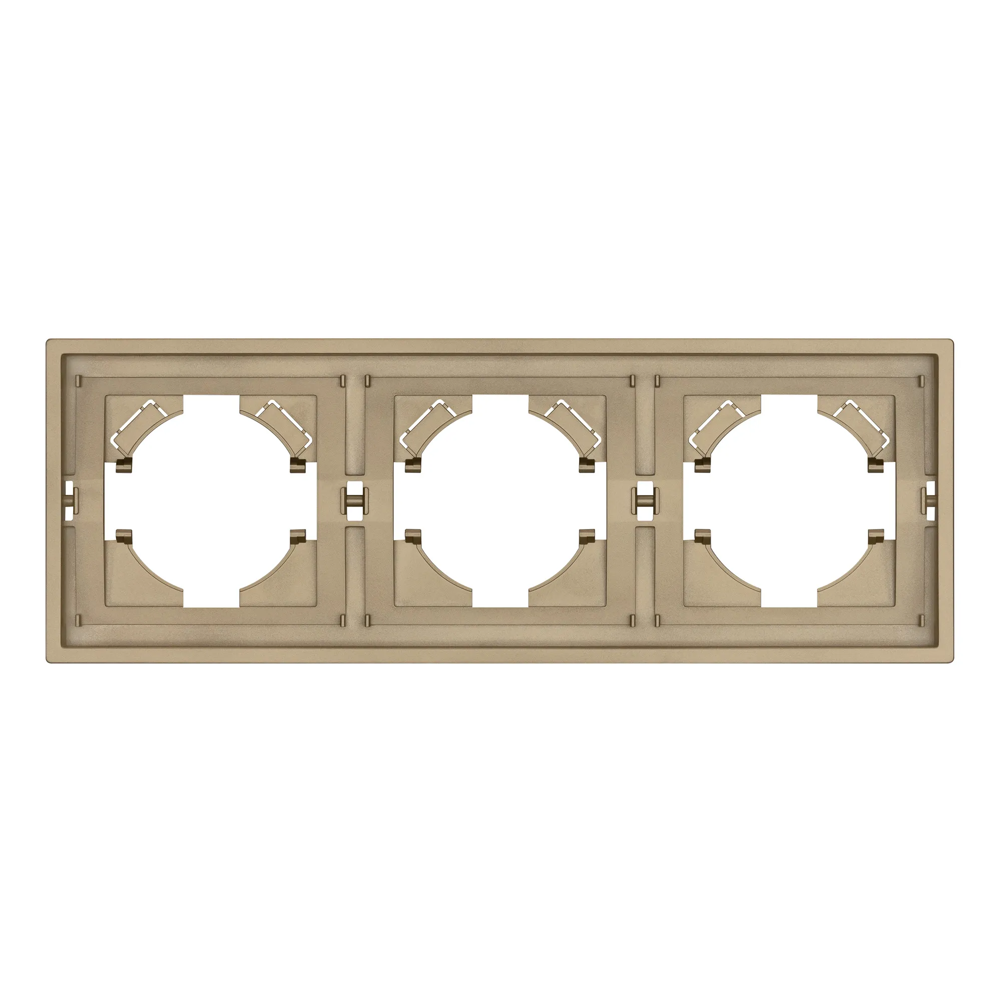 Рамка пластиковая на 3 поста, под встраиваемый механизм. Цвет - матовый песочный, с Soft-Touch покрытием. Уровень герметичности IP20. Ориентация монтажа горизонтальная. Габаритные размеры: длина 221 мм, ширина 80 мм, высота 9 мм. Гарантийный срок 12 мес.